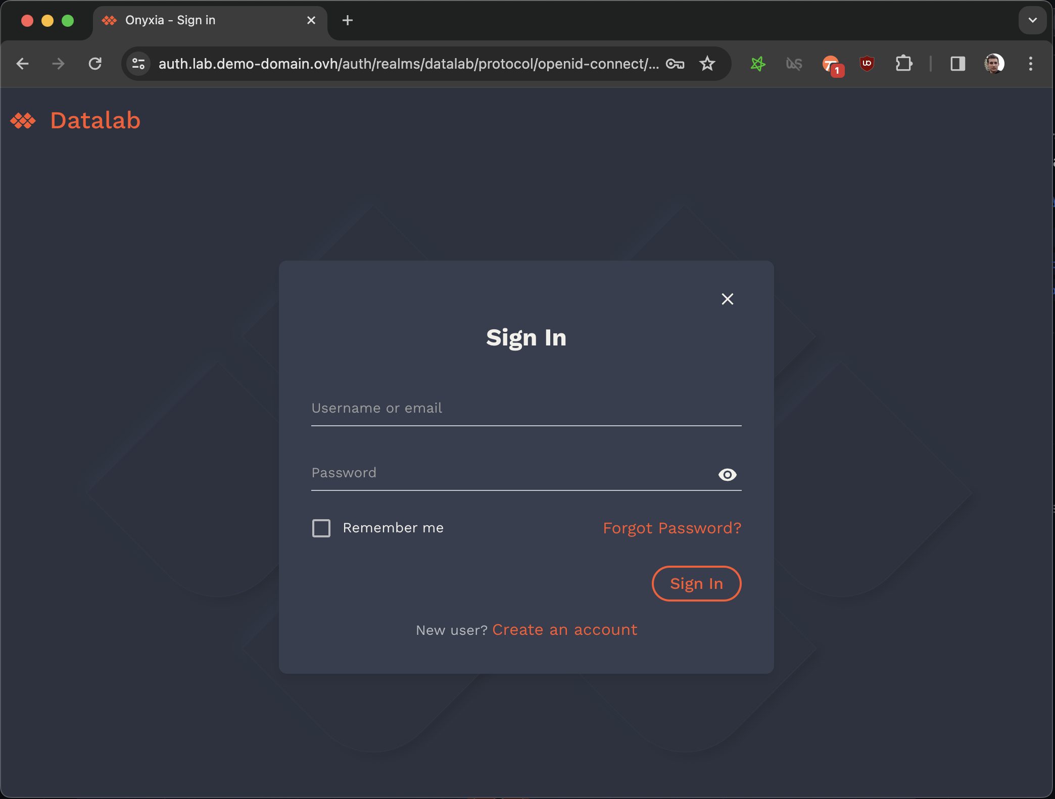 <figure><img src="https://content.gitbook.com/content/x3LIftMZY501x5liXUPV/blobs/LqMfWG0hyEmGoTdJJrFu/image.png" alt=""><figcaption><p>The screen you shoud see when clicking on "login" in your Onyxia deployment</p></figcaption></figure>