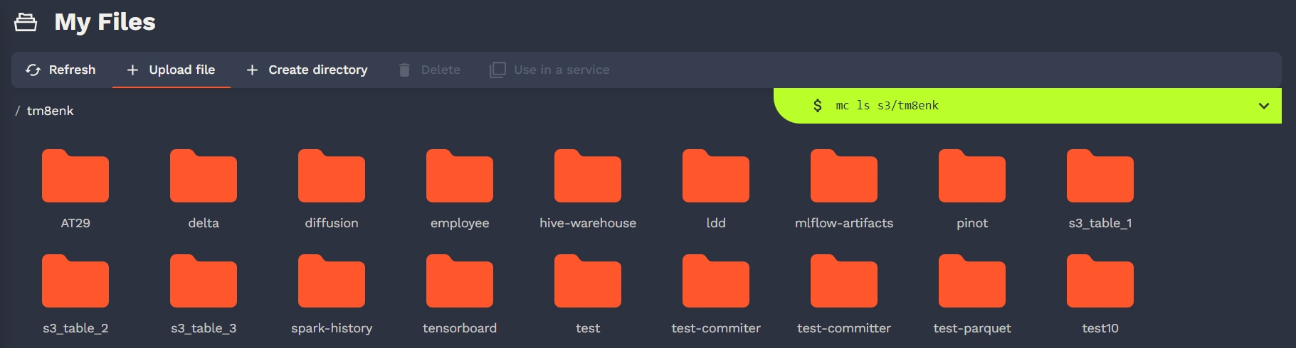 Users can manage their files on S3. There is no support for rename in S3 so don't be surprise. Onyxia is educational. Any action on the S3 browser in the UI is written in a console with a cli.