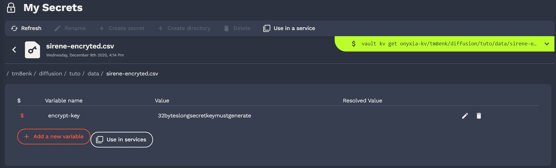 Onyxia use only a key value v2 secret engine in Vault. Users can store some secrets there and inject them in their services if configured by the helm chart.